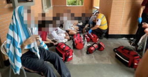 中午水退掉之後,底下的籃球場就出現了,民眾發現還發現有魚躺在地上。康裕成也介紹這是高雄的第一個滯洪池,籃球場是故意蓋在低窪的區域,「不滯洪時都提供給市民休閒運動!今天下大雨需要滯洪,因此籃球場發揮滯洪功能,裝滿了水,變成儲水空間!」