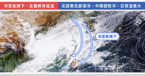 雖然目前距離大陸冷氣團強度還有段差距,但隨著冷空氣持續南下,今 (18) 日各地越晚感受會越冷。氣象專家吳德榮就在「氣象推廣基金會」專欄分析表示,最新模式模擬顯示,明 (19) 日起水氣雖然略為減少,迎風面仍有局部降雨,且明、後 (20) 日的清晨,苗栗以北恐將出現12度左右的低溫,提醒民眾務必注意保暖。