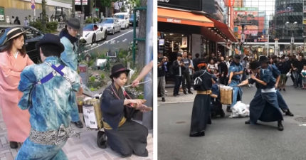 瞎趴清道夫!日本武士揮舞「武士刀」手起刀落 垃圾直接進竹籠