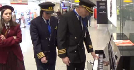 正妹等飛機落寞彈琴 機長一看加入「3人6手熱血聯彈」讓她重現笑容!