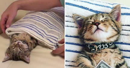 奴才貼心幫小貓蓋被 一掀開「阿兵哥睡姿」Q到翹腳腳♥