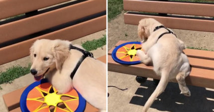 貪玩金金「努力蹬腿爬椅子」 慘被縫隙陷害:哎呀腳滑 (糗)