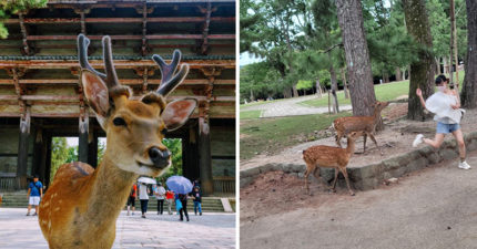 奈良餵鹿肩帶被扯斷!辣媽嚇喊「我的OO掉出來了」 老公神回1句網笑翻