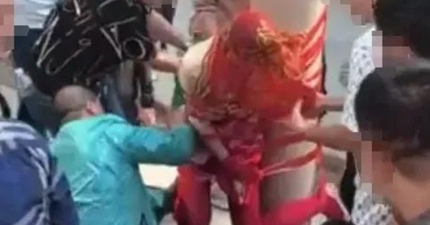 新娘才下禮車就被劫走!遭多男「綁電線桿」她尖叫:別摸了