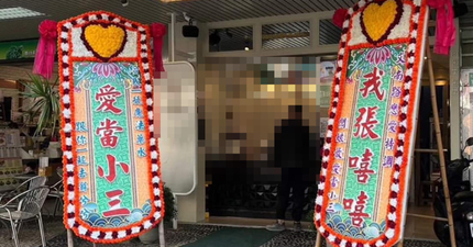 「我張嘻嘻,愛當小三」台南飲料店出現驚人花圈 本人現身回應了