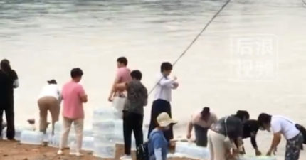 阿北大媽猛搬好幾箱水 集體開蓋「朝水庫潑去」:要放生礦泉水