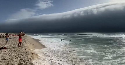 影/要出大事了?「海嘯雲」遮黑半邊天 泳客目睹嚇逃