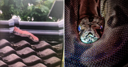 「巨肥紅蛇」竄出屋頂探頭 她急求救!警消架梯子爬上去愣了