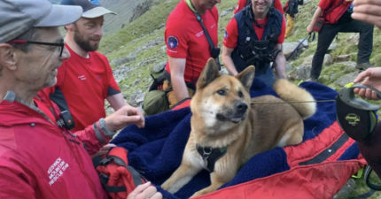 33公斤秋田犬「爬山累到走不動」 13名救難隊輪流扛下山:傷者很冷靜